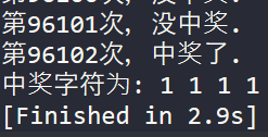 # 这里选择输出每一次没中奖时已经循环的次数,也可以不这样做。