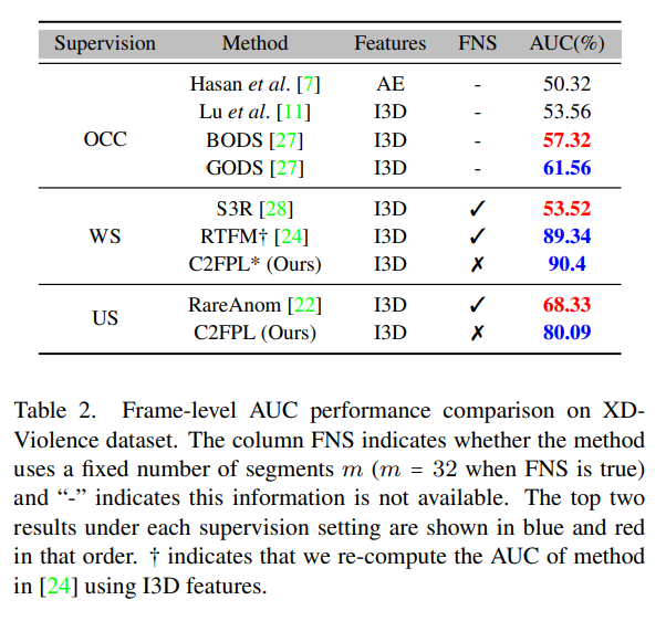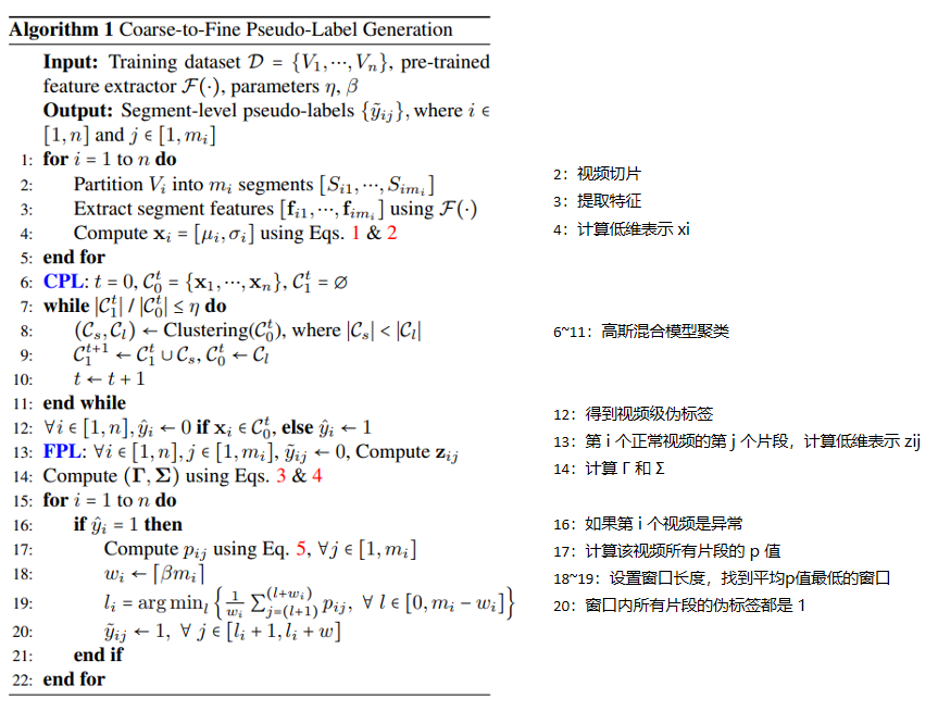 文章最大的贡献即提出了 C2FPL 框架,并基于此框架提出了无监督异常检测系统,将伪标签的生成过程由粗到细(Coarse-to-Fine),先是生成视频级的标签,后细化为片段级。作者虽然说也实现了帧级标签,但实际上就是片段级的标签全部应用到所有帧上